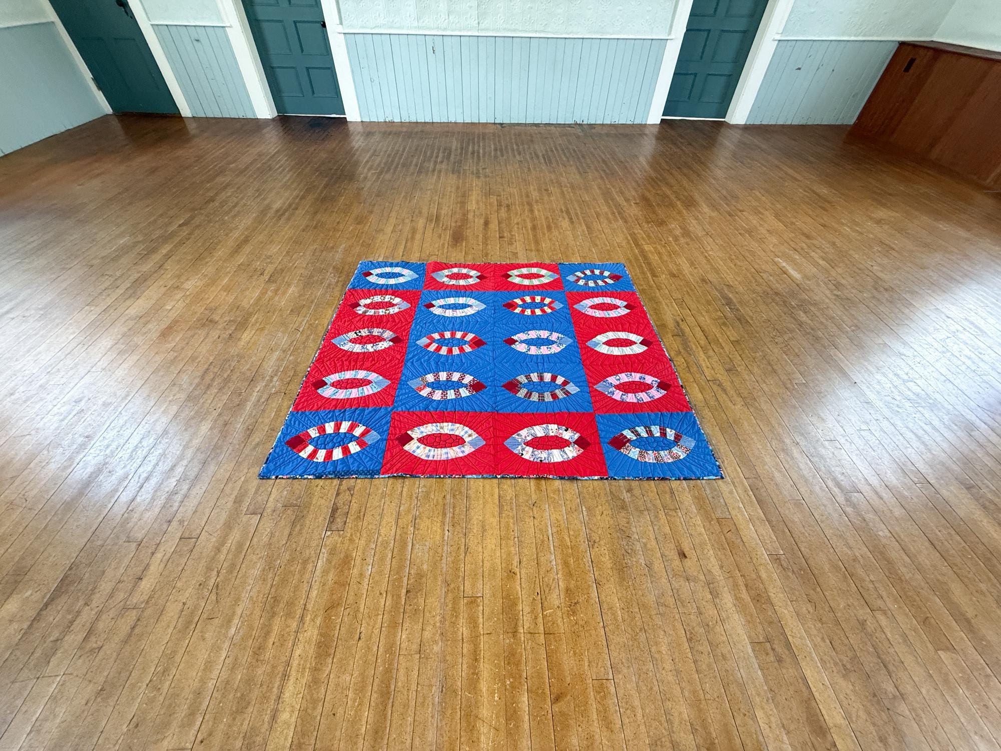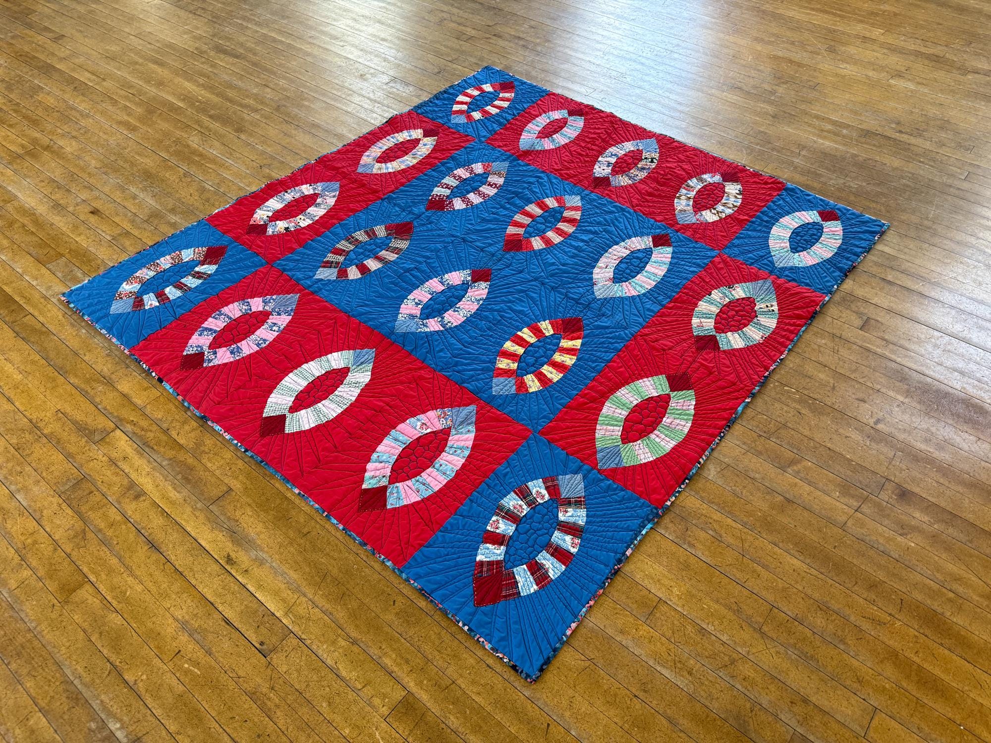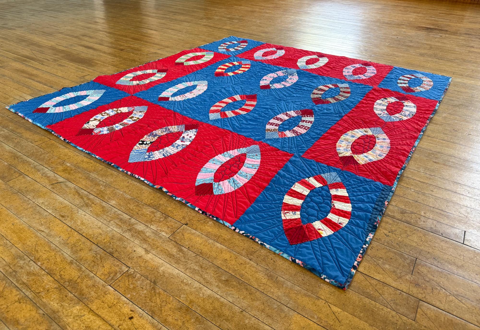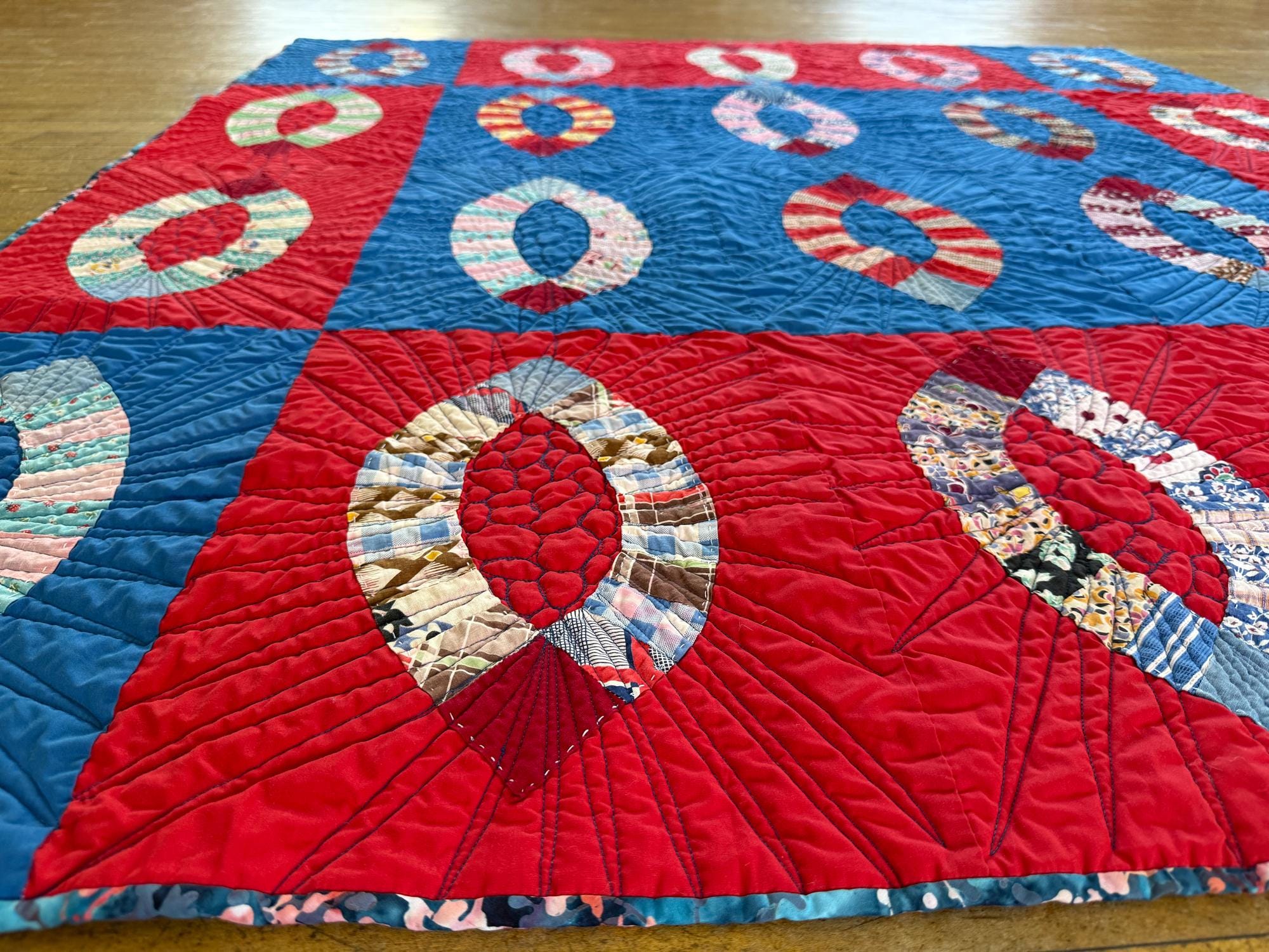 PLEASE NOTE HOWEVER:  I've washed this quilt three times on cold because the red blocks bleed a bit. There will still be bleeding on subsequent washings (the dye comes out a little and runs), and with that in mind this quilt absolutely needs to be washed on cold, separately, or with like colors and care needs to be taken when storing with other items. The running hasn't ruined the quilt at all, but with this fact in mind I'm pricing this quilt accordingly. I'd like to cover my costs and materials so it's a special price!