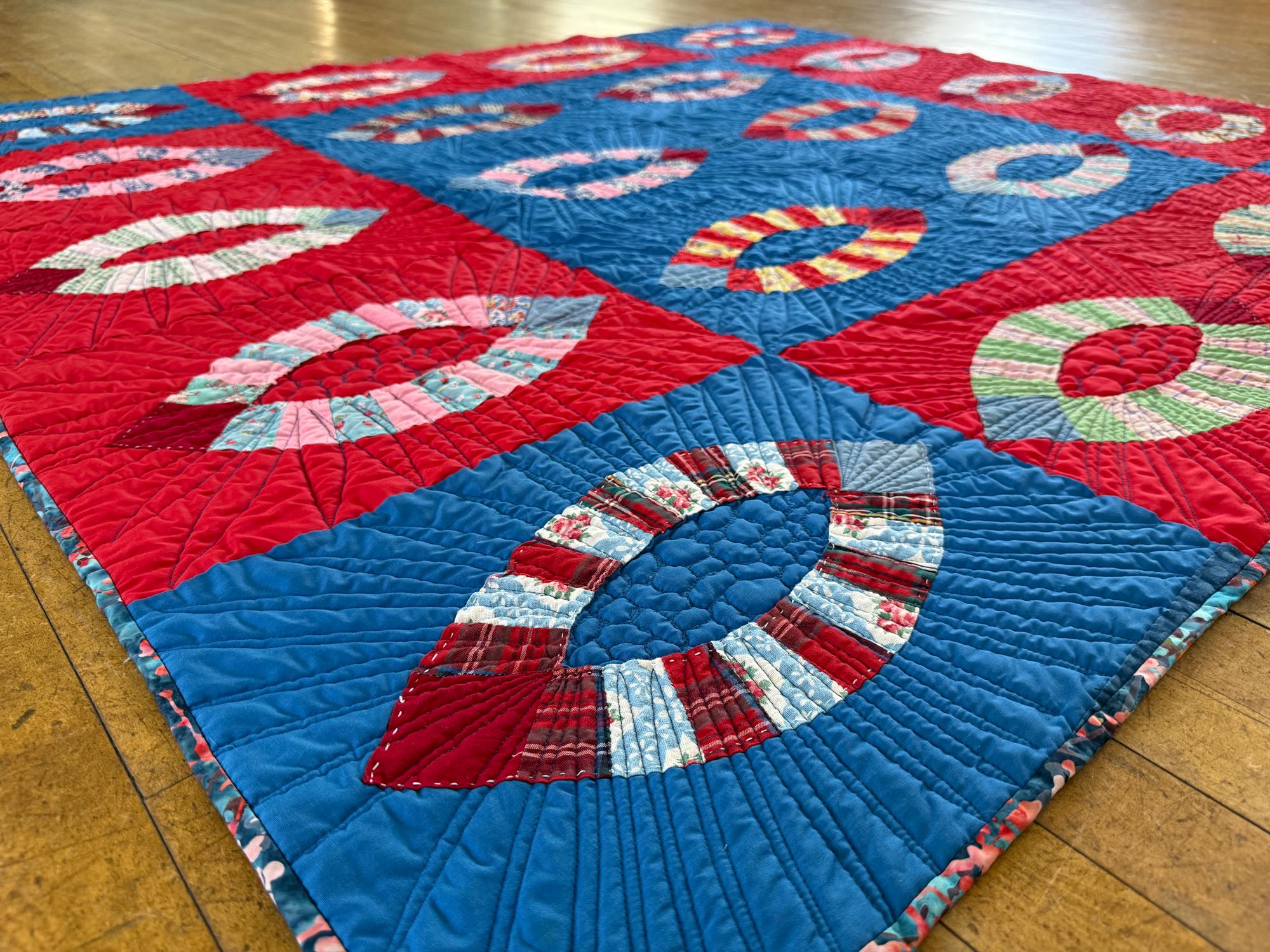 Following my love of Vintage Quilts and Quilt History, I find and source unfinished vintage quilt tops from various places. I then make any repairs needed to the quilt top, including mending loose seams, replacing disintegrated fabrics, and attending to stains that may be treated. I then pair the quilt with a modern fabric backing and batting and quilt it using my longarm quilting machine. I use no computers on my longarm and everything is done manually by hand. In the end, these unfinished quilts from long ago are transformed into quilts that are totally amazing, stunning, and, well, beautiful! Sometimes I'm so struck by a quilt's transformation! It is an honor to bring these beauties into the future and finally give them the ability to be used and loved!