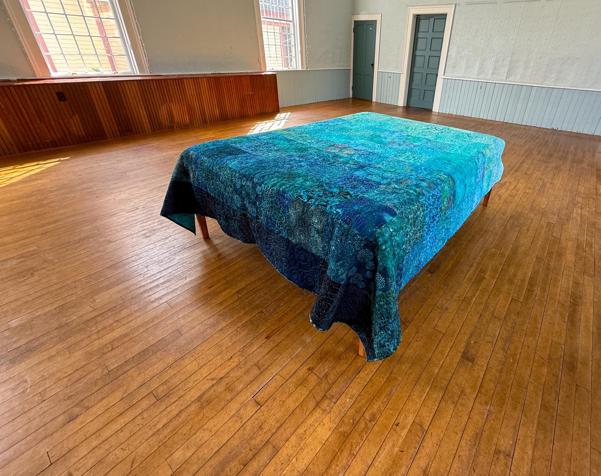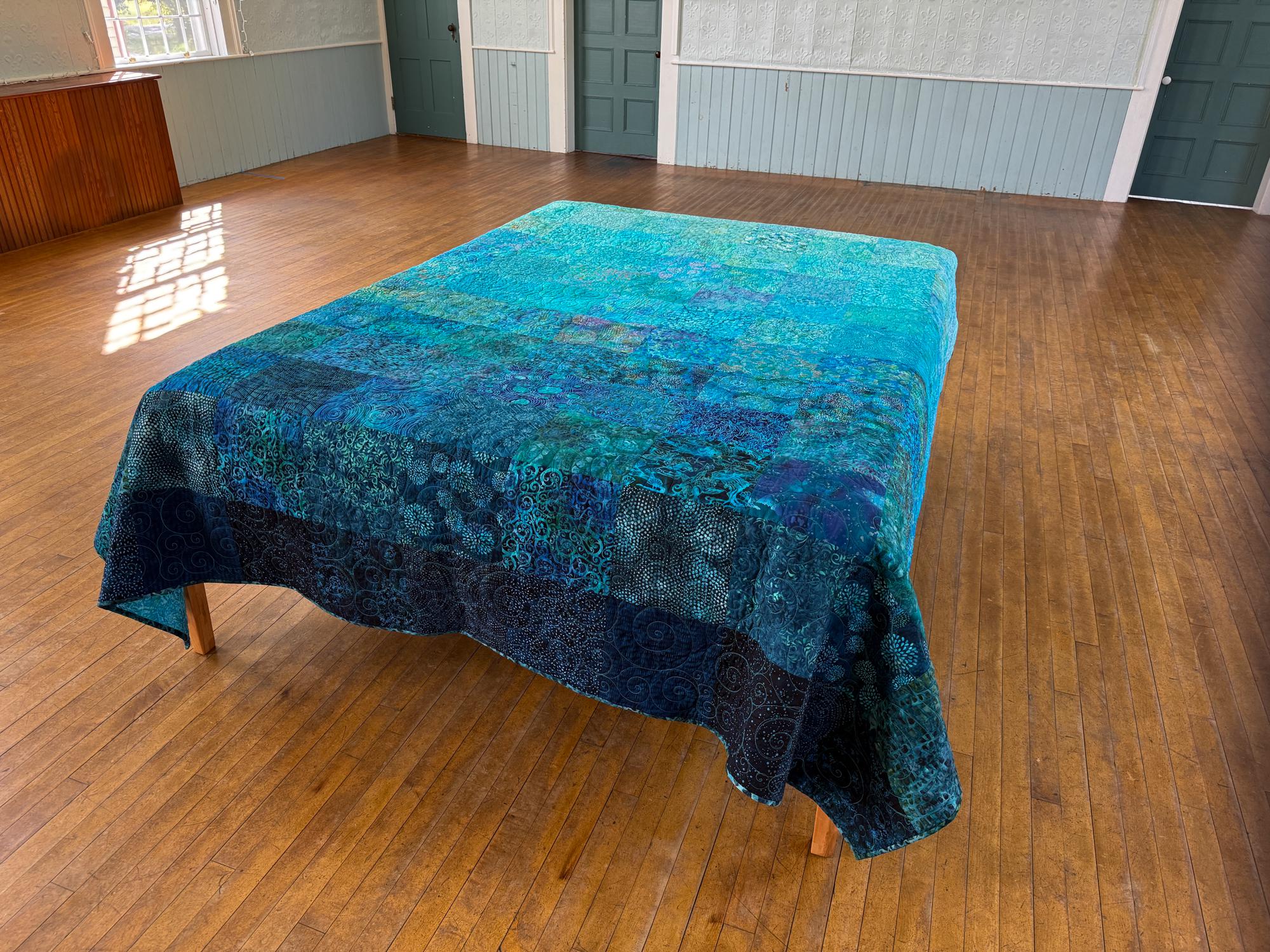Modern Queen Size Quilt. Luxuriate in the tidal pools, and imagine a beach in the West Indies, and the colors in this quilt will transport you there. A beautiful addition to your home decor, this quilt will be custom made for you!