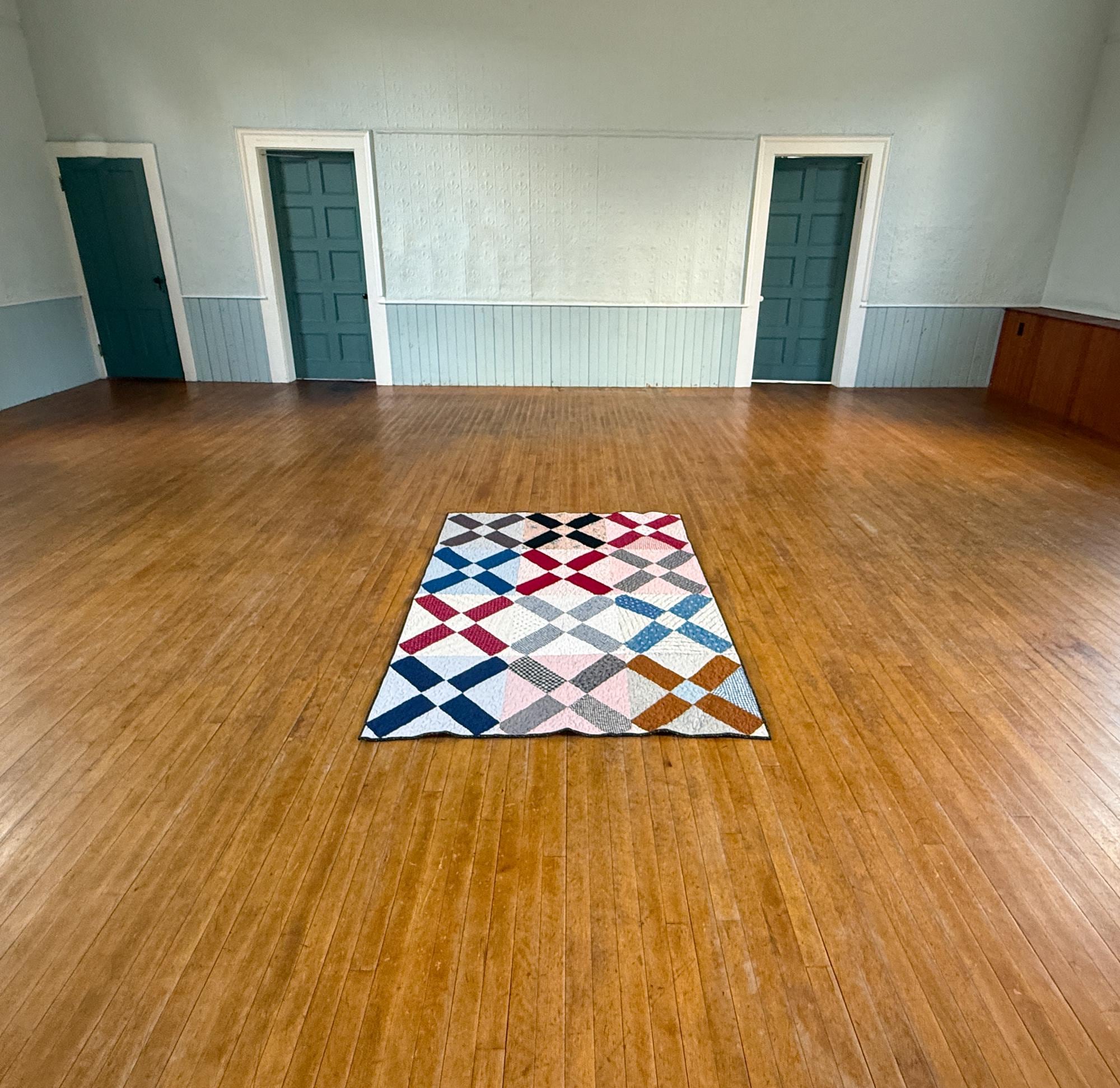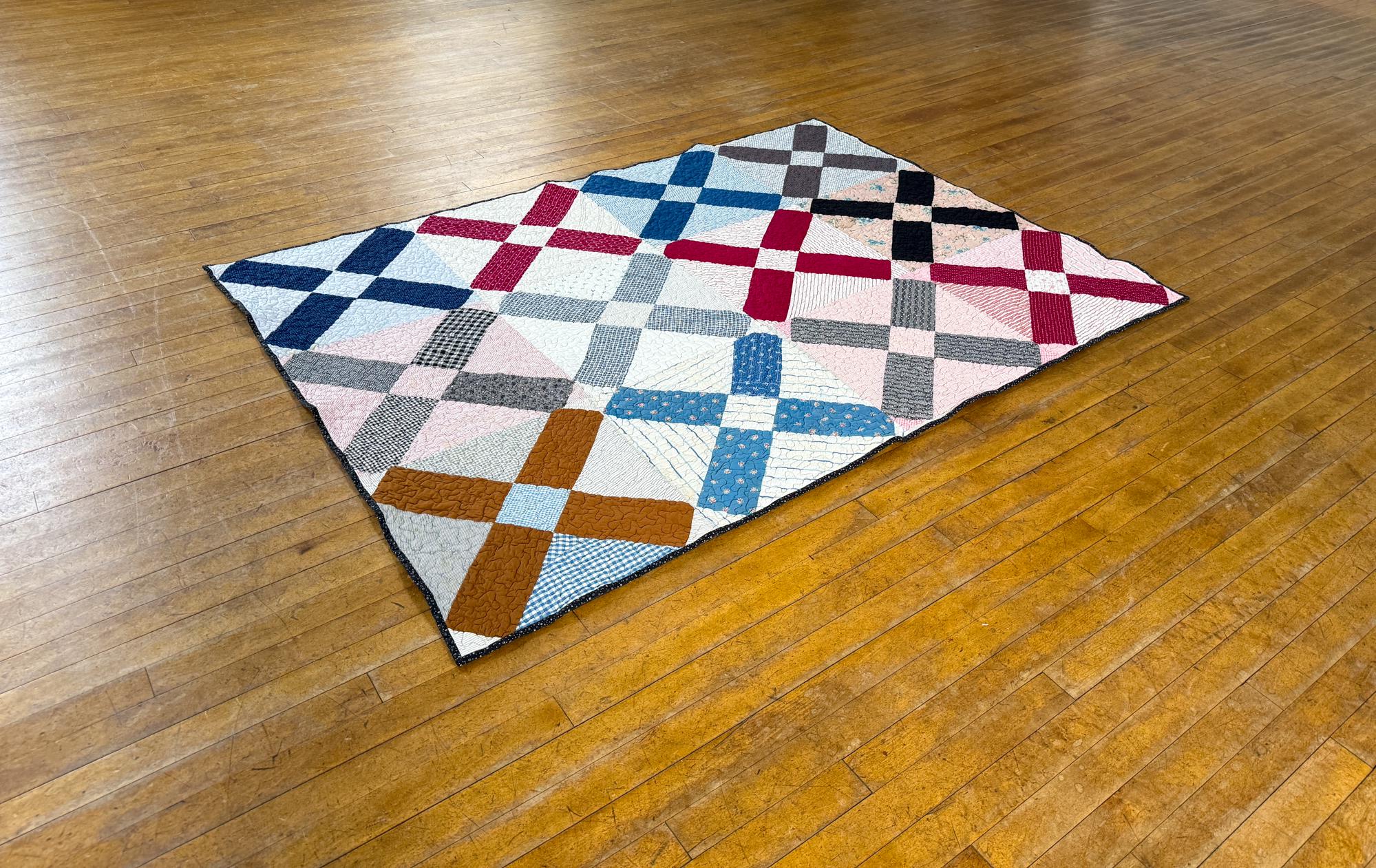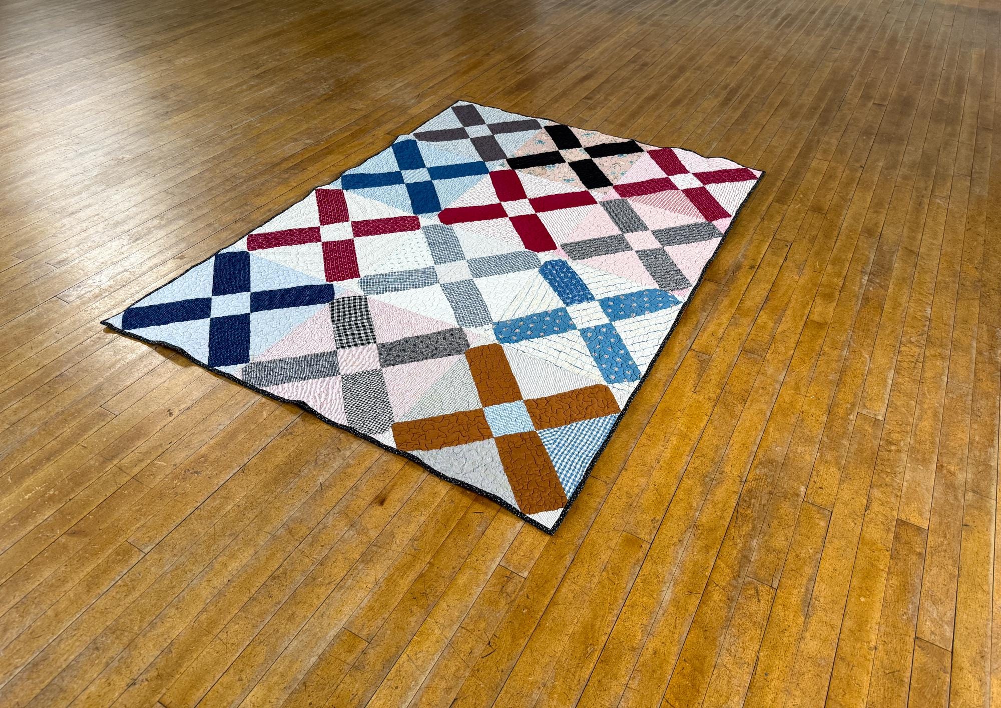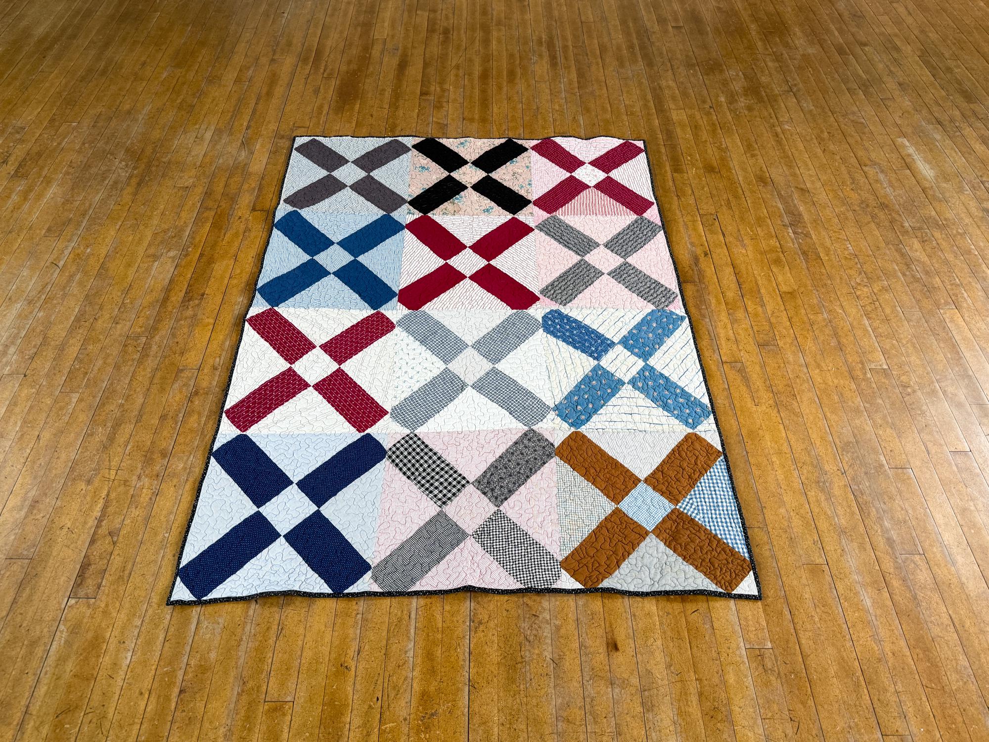 The quilt is composed of 12 original hand-pieced blocks, which I purchased as a set and then carefully arranged to create a pleasing balance of color, contrast, and design. The result is a visually striking layout that feels both classic and timeless.
